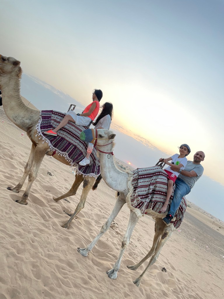 Նաև այցելեցինք Դուբայի Սաֆարի։ Անապատային տարածքը իդեալական էր ուղտերի, կուադրո մեքենաներ վարելու և բարձր ավտոմեքենաներով անապատային բլուրները հաղթահարելու համար։ Նաև արաբական ոճով մեհենդի ձեռք բերեցի ուսիս վրա։